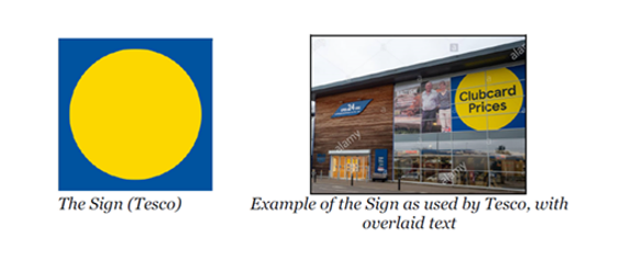 Although Lidl complained about use of the Sign, which does not include any text, Tesco had not, in fact, used the Sign on its own, but only with the words CLUBCARD PRICES within the yellow circle.